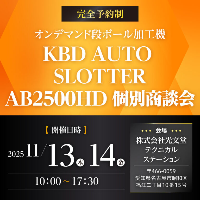【完全予約制】 オンデマンド段ボール加工機 「KBD AUTO SLOTTER AB2500HD」個別商談会のご案内
