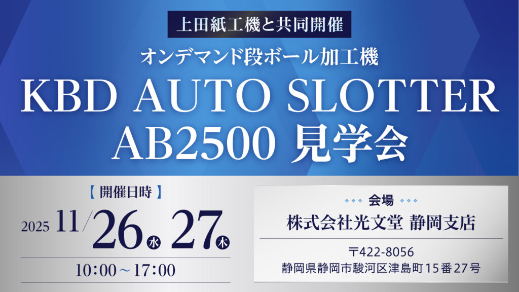 オンデマンド段ボール加工機「KBD AUTO SLOTTER AB2500」の見学会を共同開催いたします。